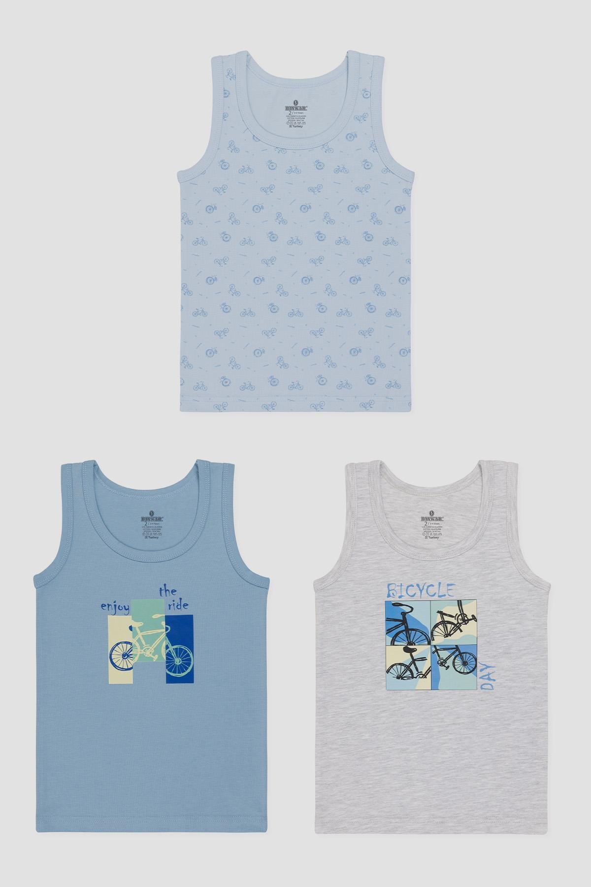 Erkek Çocuk Pamuklu Bisiklet Yaka Baskılı Atlet Tişört 3'lü Paket 2524 Renkli (2524-3)