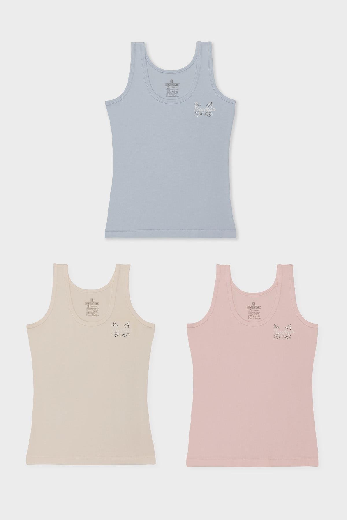 Kız Çocuk Pamuklu Kalın Askılı Renkli Baskılı Klasik Atlet 3'lü Paket 4892 Renkli (4892-3)