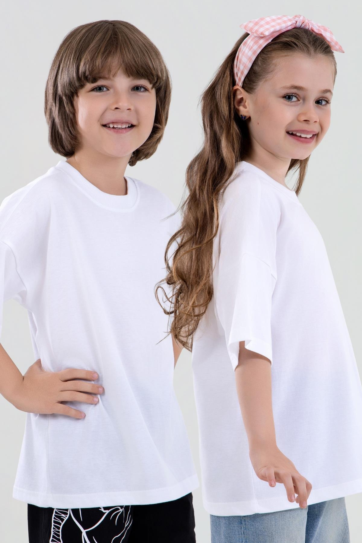 Oversize kesimi, çocukların rahatça hareket etmelerine olanak tanırken, bisiklet yaka ve kısa kol tasarımı, günlük kullanım için ideal bir seçenek sunar. Esnek yapısı sayesinde oyun oynarken, okulda veya parkta özgürce hareket edebilirler. Beyaz rengin zarifliği, bu tişörtleri her türlü alt giyimle kolayca kombinlemeyi mümkün kılar.